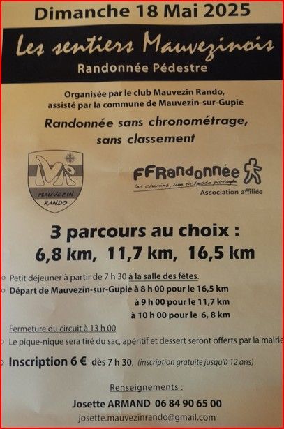 - 1 rando douce guidée de 5,5 km, départ à 10h30.