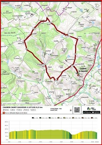 le lieu de départ : CAUBON-SAINT-SAUVEUR (47120), parking salle des fêtes, en hauteur sur la gauche, route de la mairie.
