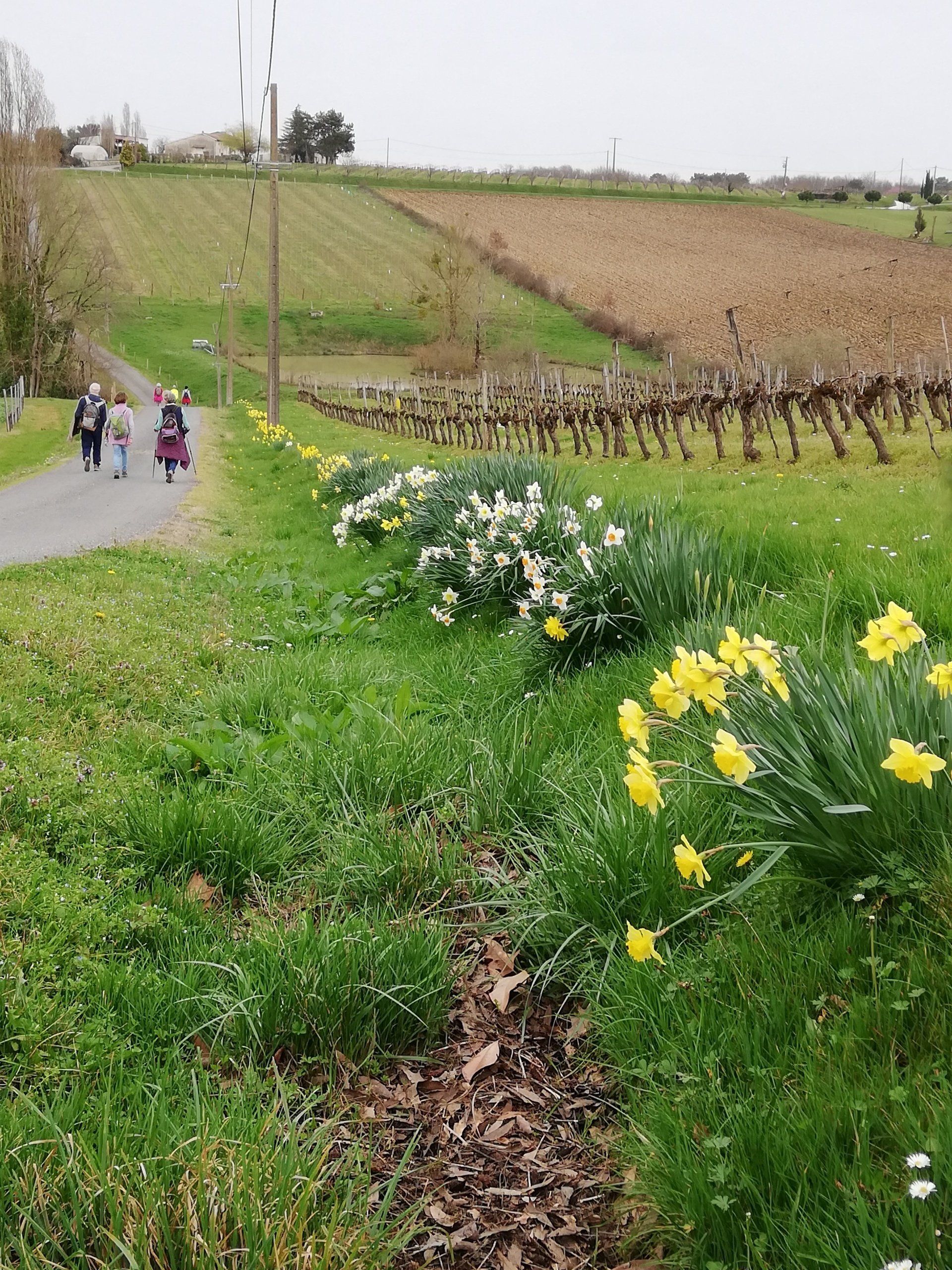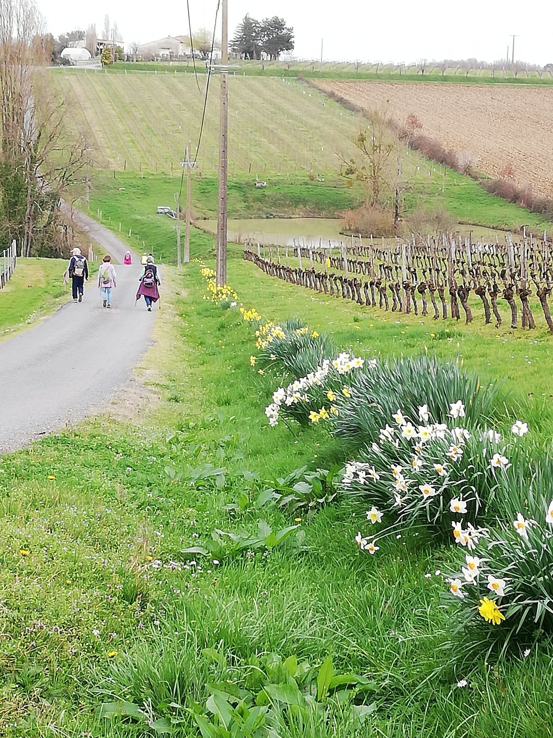 Jeudi 8 avril à Saint-Géraud. Merci à Josiane, Sylviane et Pierre pour leurs regards sur la flore locale lors de ce circuit panoramique sur les coteaux de Duras
