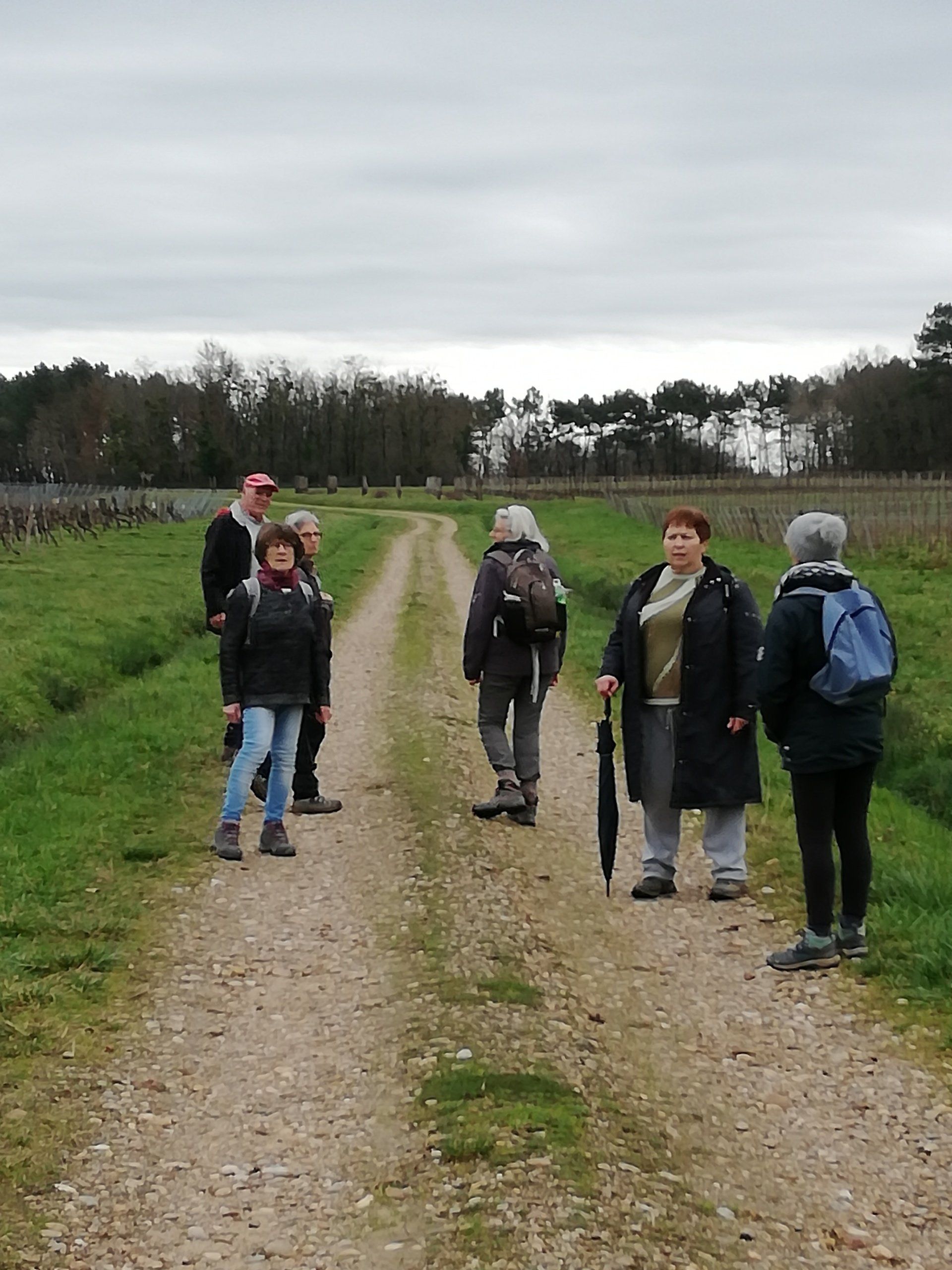 Dimanche 07 février 2021 à Saint-Ferme. Après la visite de l'abbaye belle rando en forêt et à travers vignes. Aperçu les premiers vols de grues. Les beaux jours arrivent !