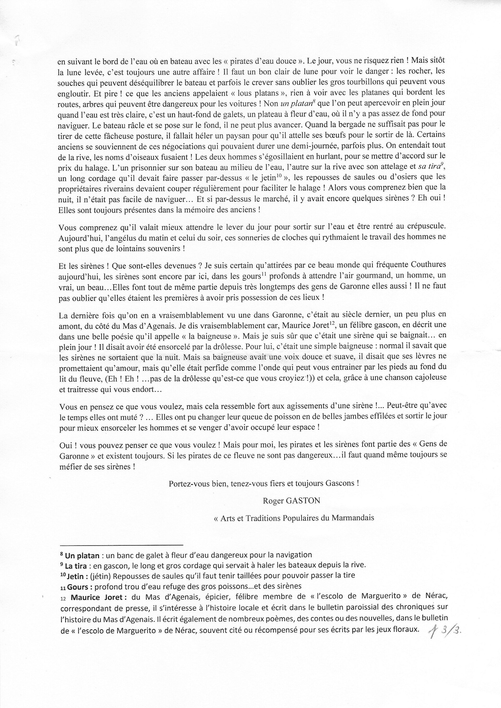 Avec l'autorisation de l'auteur et conteur M. Roger GASTON que nous remercions, voici ci-dessous la traduction du récit conté en occitan devant le public charmé